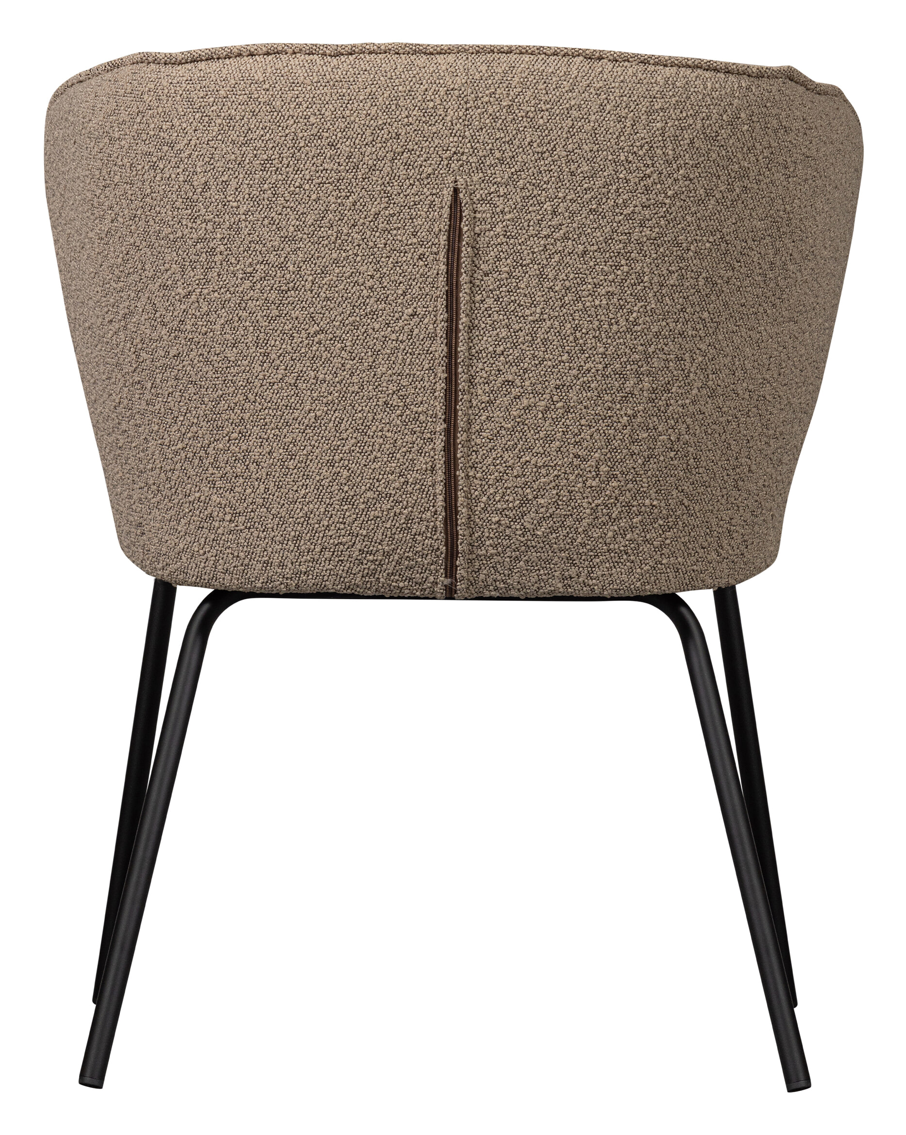 Het zitgedeelte is bekleed met een bouclé stof. De bouclé bekleding behoudt zijn form fitting pasvorm vanwege de twee naden in de rugleuning en de rits aan de achterzijde. De stofsoort heeft een onregelmatig oppervlak en dit maakt de stoel extra aaibaar. Het onderstel is gemaakt van gepoedercoat metaal. Geef stoel ‘Admit’ een plek in je eethoek of plaats je ‘m liever op een andere plek? Aan jou de keus!