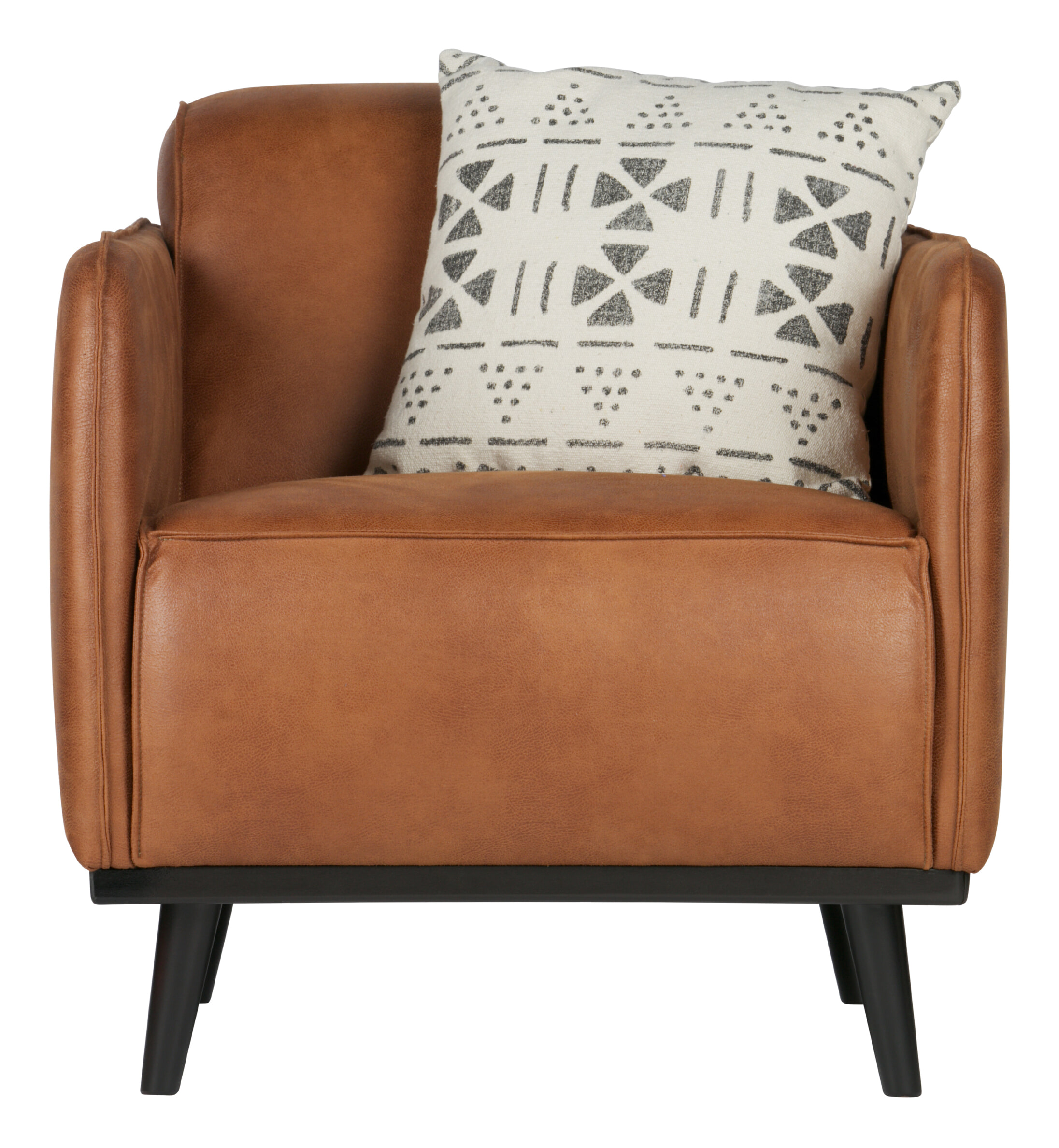 De naam van deze fauteuil zegt genoeg, toch? Een fauteuil als deze staat als een duidelijk element in huis. Het design van Statement is basic, maar valt door de omvang natuurlijk wel op. Combineer deze fauteuil met de banken uit de Statement serie voor een gave en complete zithoek. Deze Statement fauteuil past perfect in de collectie van WOOOD, is puur en stoer en bestaat uit meerdere varianten, stoffen en kleuren. Deze variant is voorzien van Recycle leer in een cognac kleur.