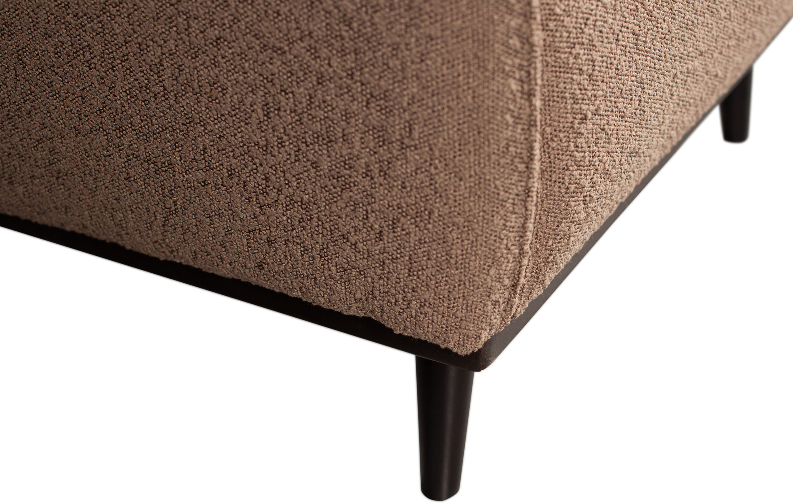 - Materiaal: Bouclé stof (100% polyester) en berkenhouten poten