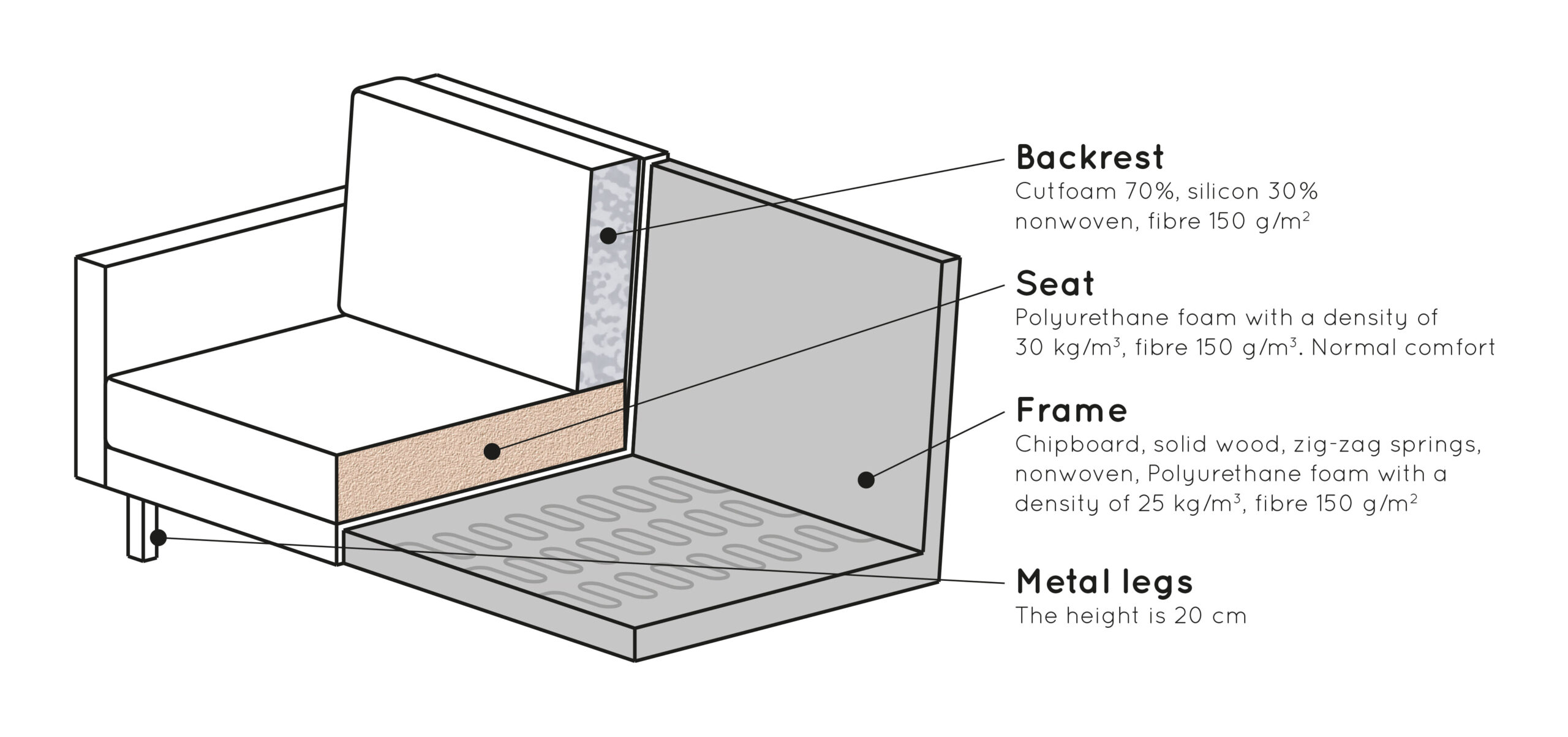 - Materiaal: 100% polyester bekleding en zwart metalen poten