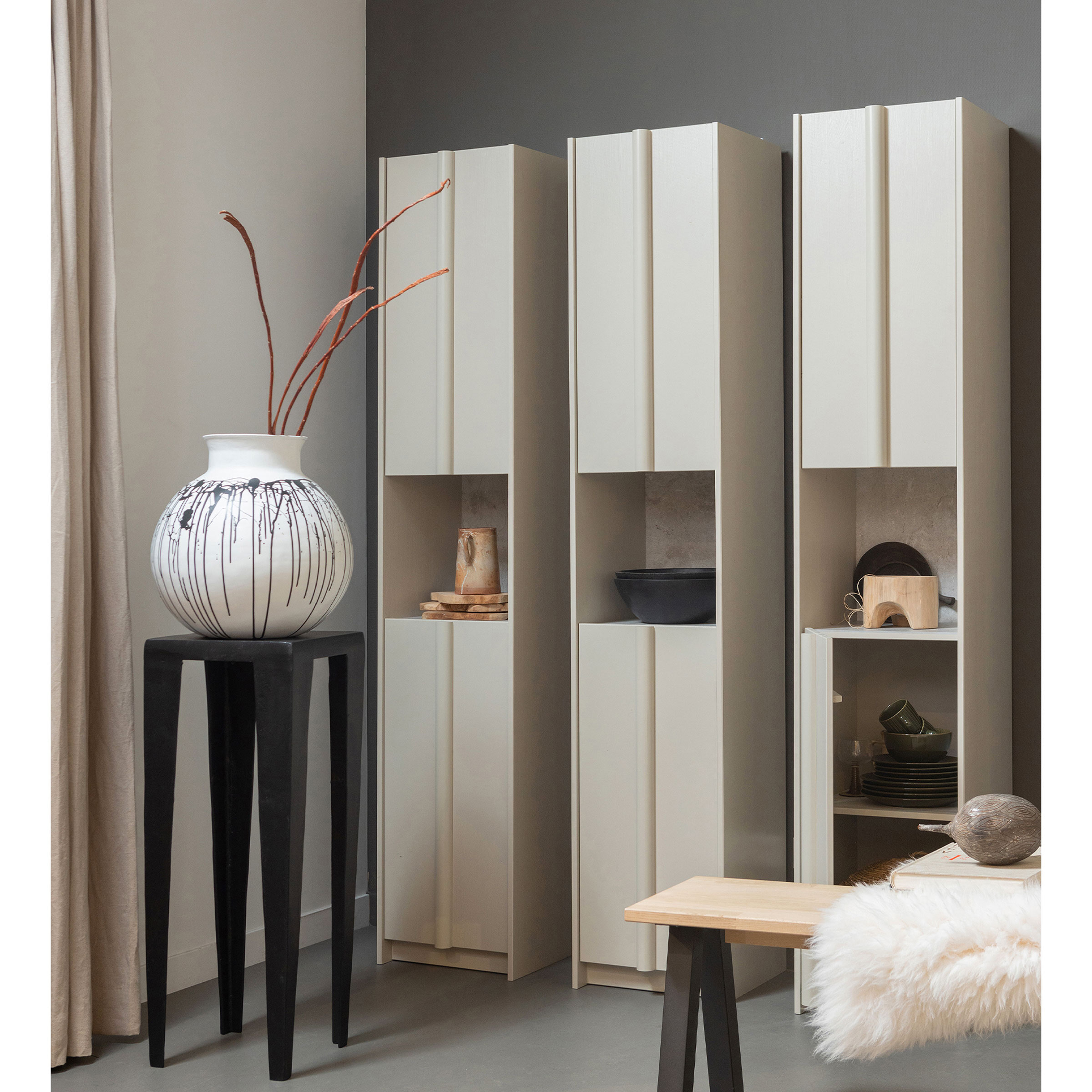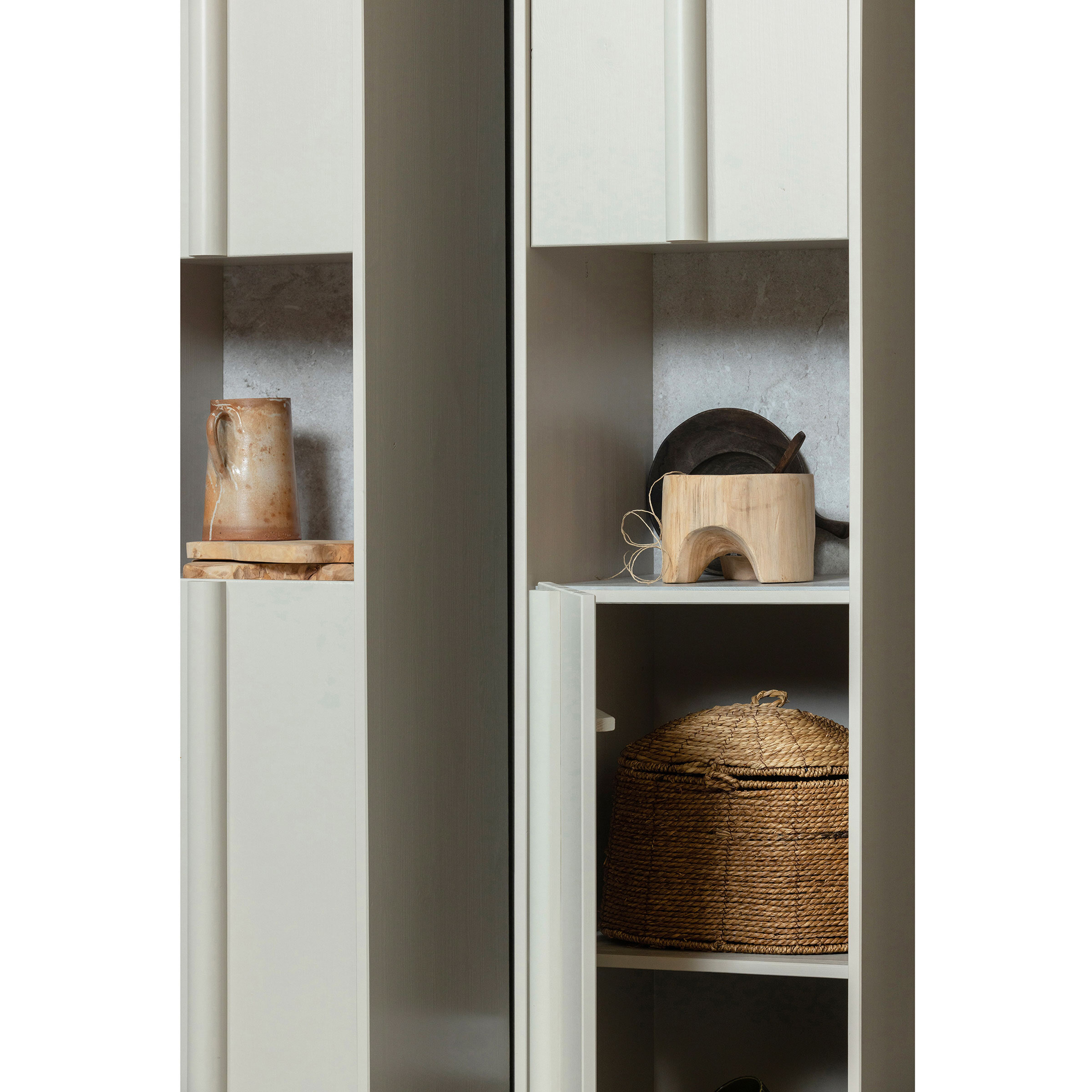 Haal een unieke kastcreatie in huis met deze Basu-serie. Basu komt uit de Exclusive collectie van het Nederlandse interieurmerk WOOOD en valt op door het speelse lijnenspel, de matte natuurtinten en het tijdloze Scandinavische design. De Basu-collectie is speels samengesteld in kleuropties, kastvarianten en de smalle kast heeft een aankleding van stijlvol concrete decor. Zo personaliseer je jouw Basu-serie helemaal naar wens!