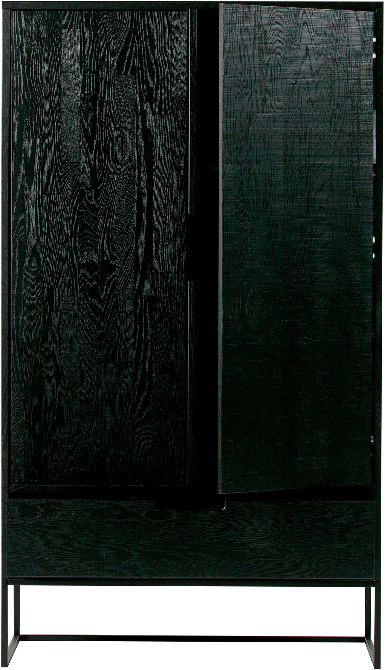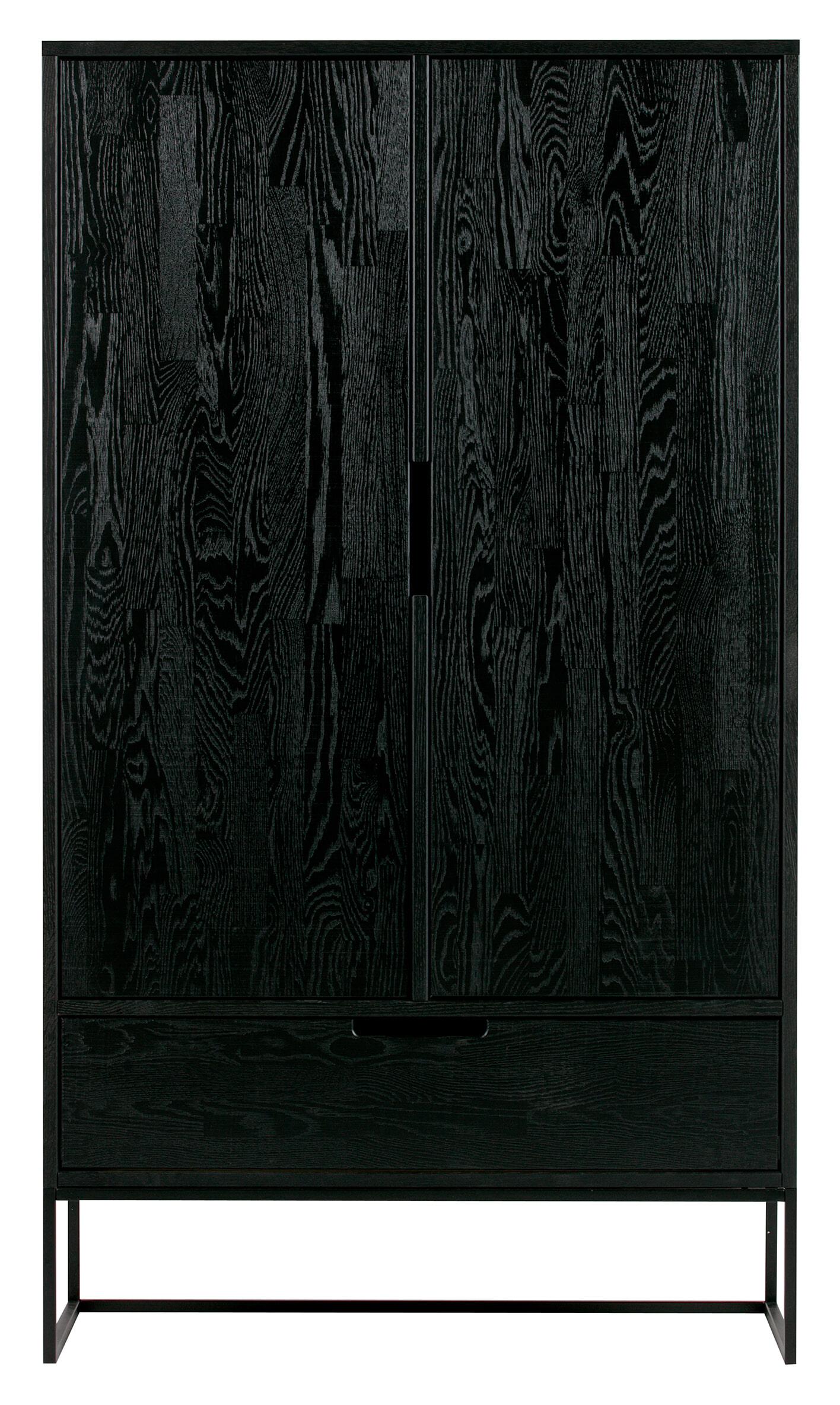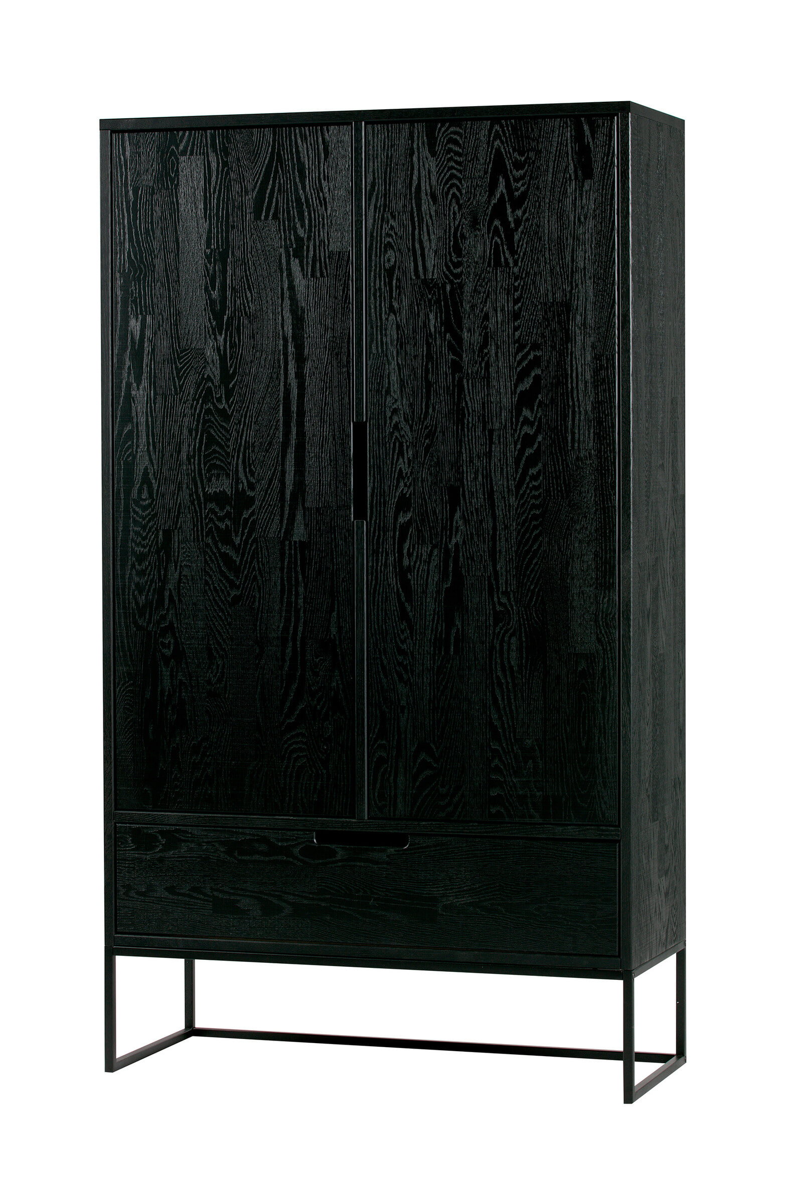 De WOOOD Silas 2-deurs kast [FSC] heeft een moderne uitstraling en biedt een stijlvolle plaats om je spullen in op te bergen. De Silas 2-deurs kast is gemaakt van massief eiken met een geborstelde afwerking dat is afgelakt in de kleur blacknight. Het onderstel (h: 20 cm) is gemaakt van metaal en is afgewerkt in een zwarte kleur.