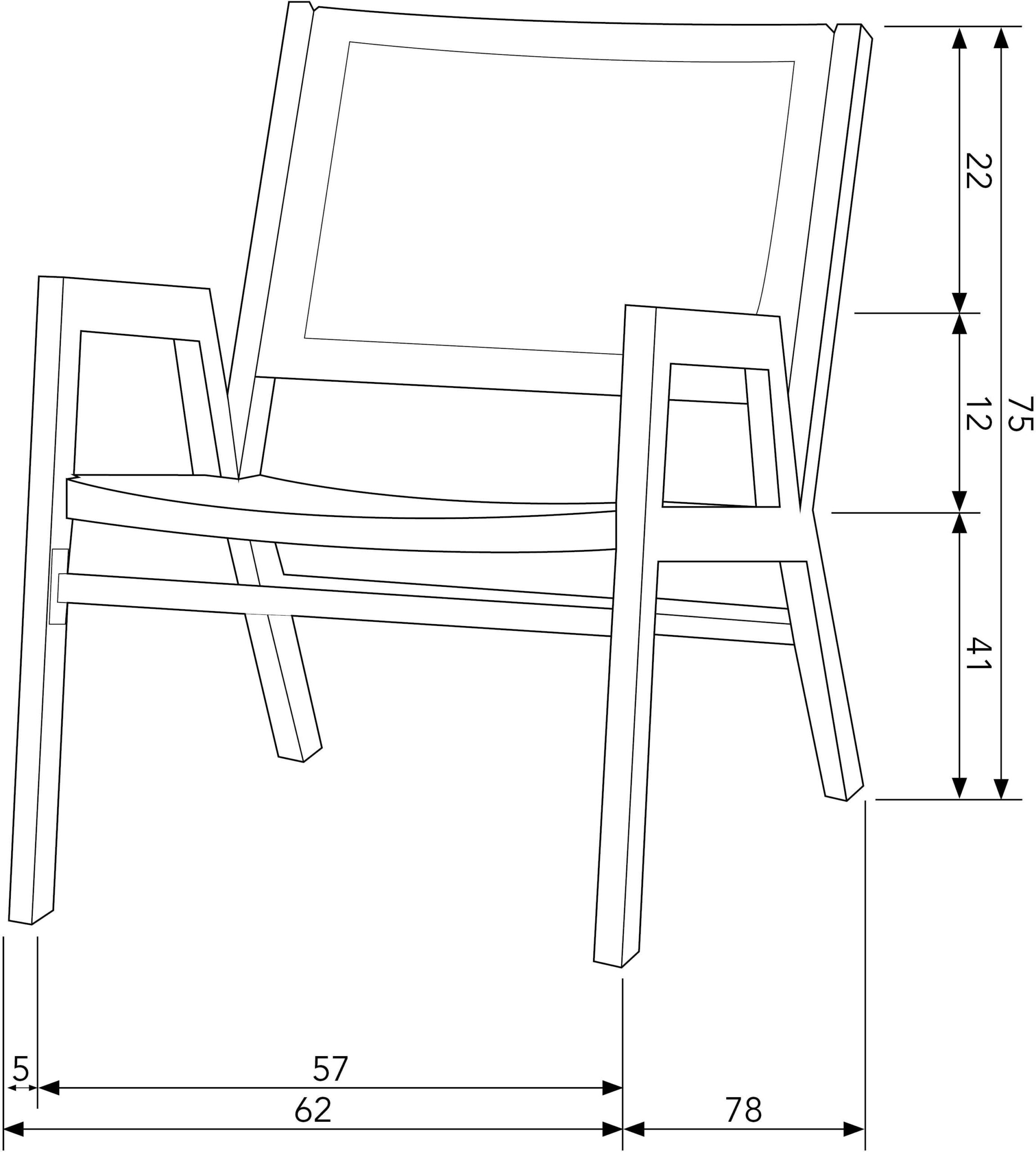 De Pem fauteuil is 75 cm hoog, 62 cm breed en 78 cm diep. De voorzijde van de zitting is iets hoger dan de achterzijde, dit zorgt voor een relaxte zit met je gezicht naar de zon gericht.