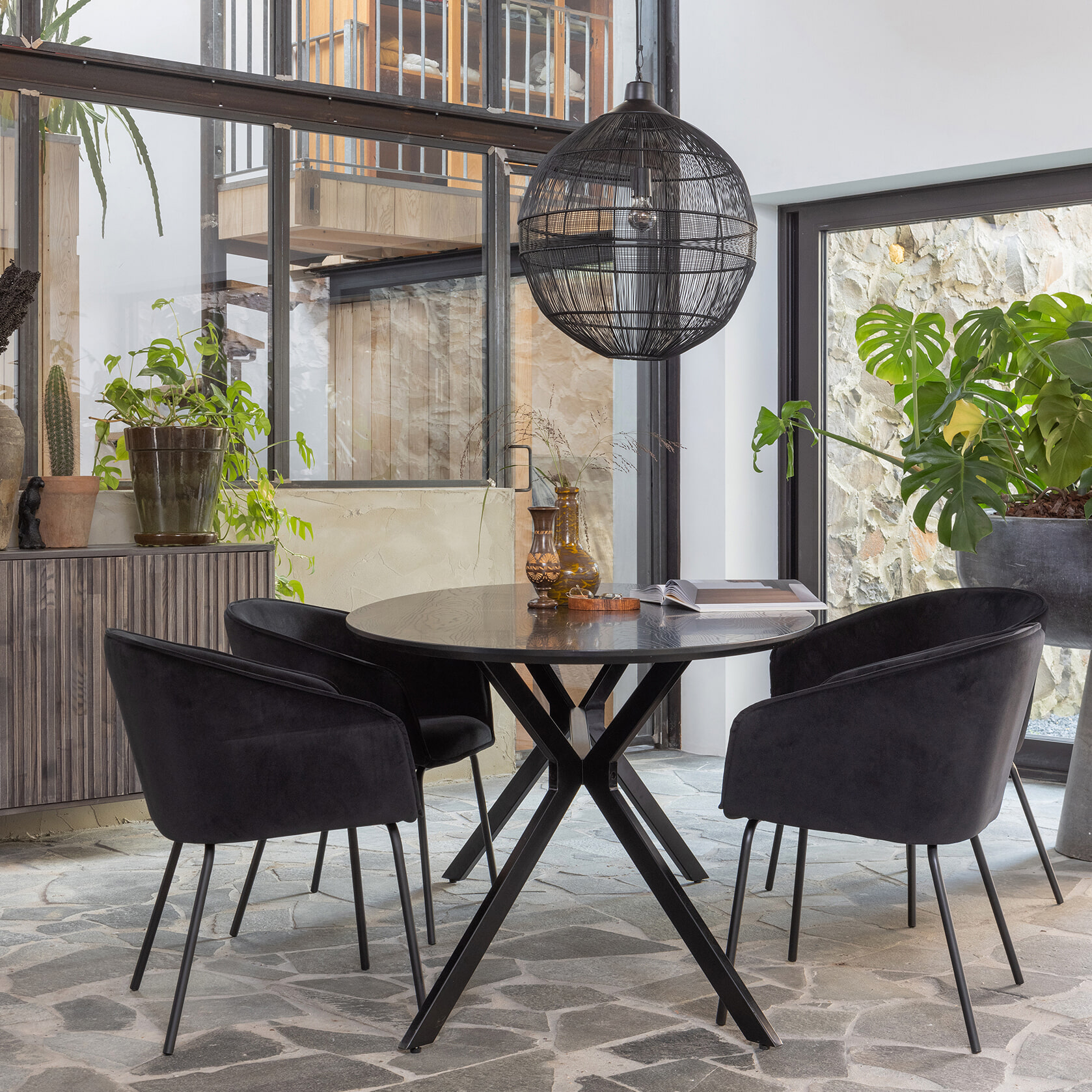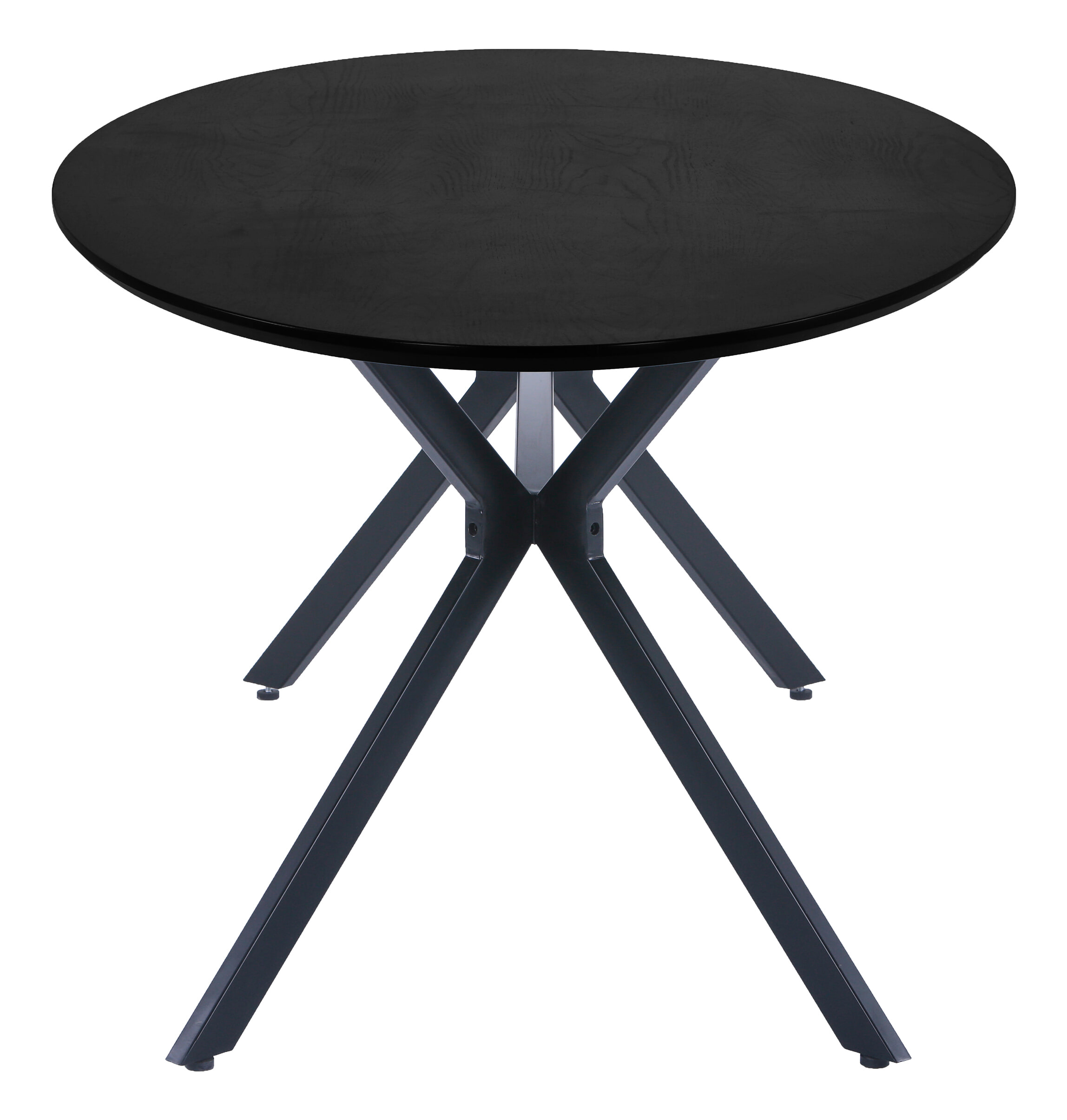 De ovalen MDF eettafel Bruno in de kleur zwart komt uit de collectie van het interieurmerk WOOOD. Het tafelblad heeft een afmeting van 220×100 cm, wat geschikt is voor heerlijk tafelen met 6-8 personen. Het tafelblad heeft een dikte van 25 mm en is afgelakt in een matzwarte kleur.