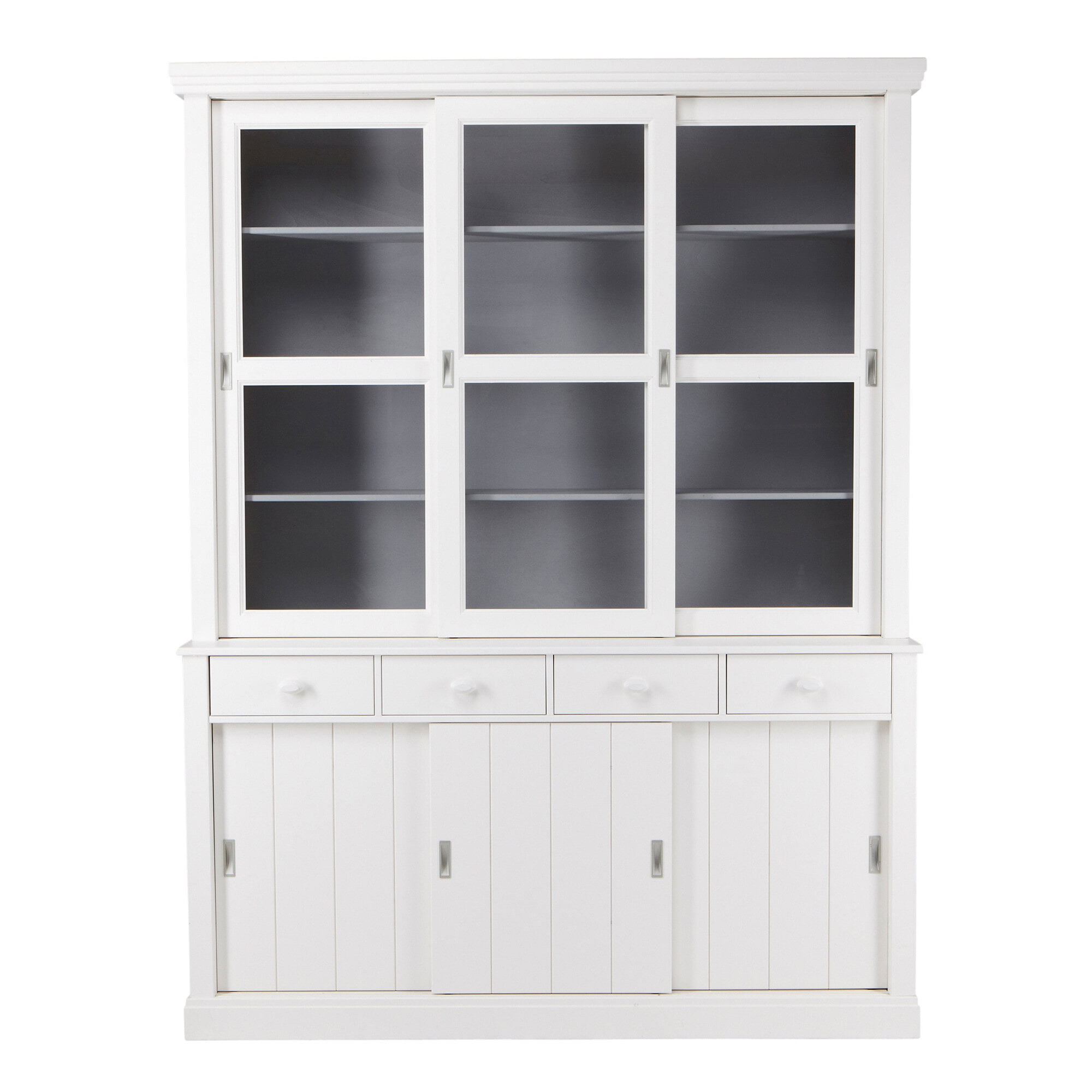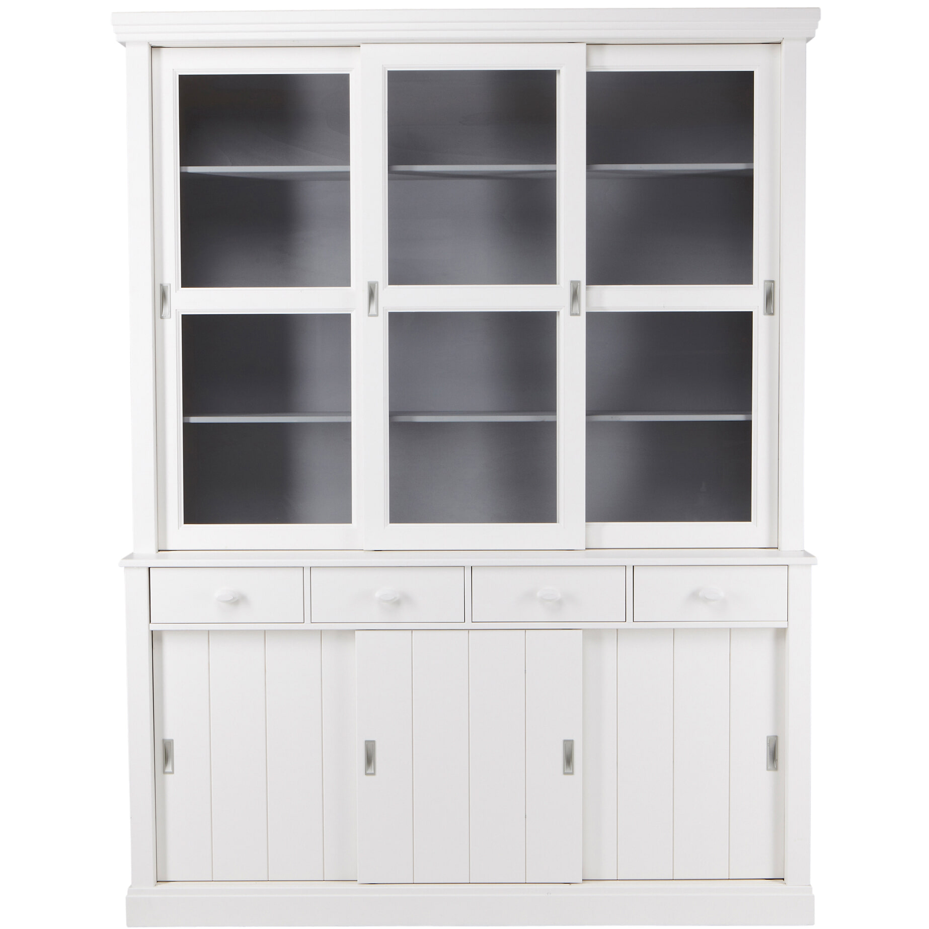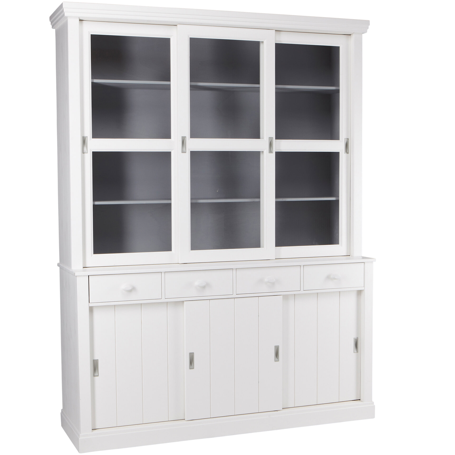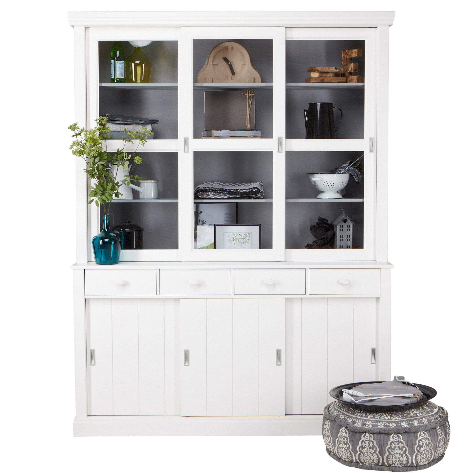 - Voorzien van vier lades, drie dichte schuifdeuren en drie glazen schuifdeuren
