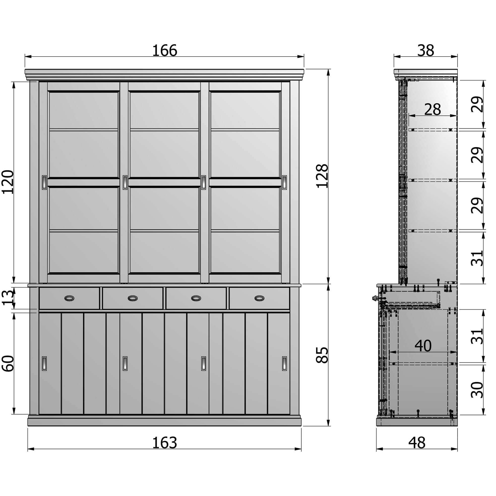 - Breedte bovenkast: 166 cm