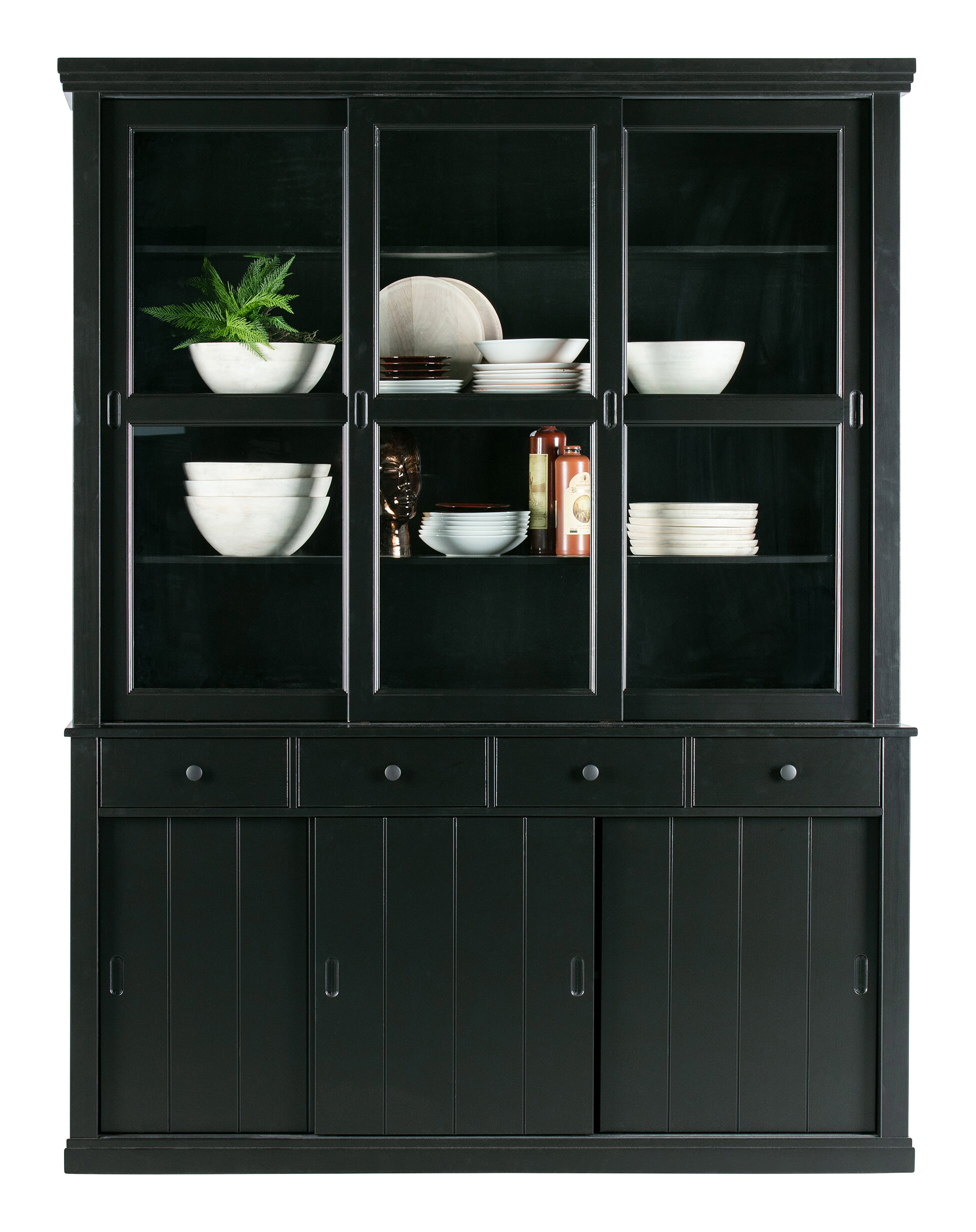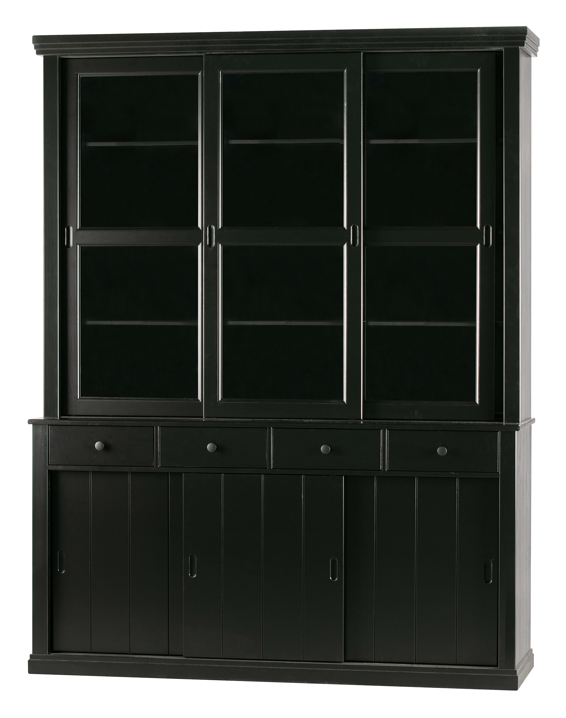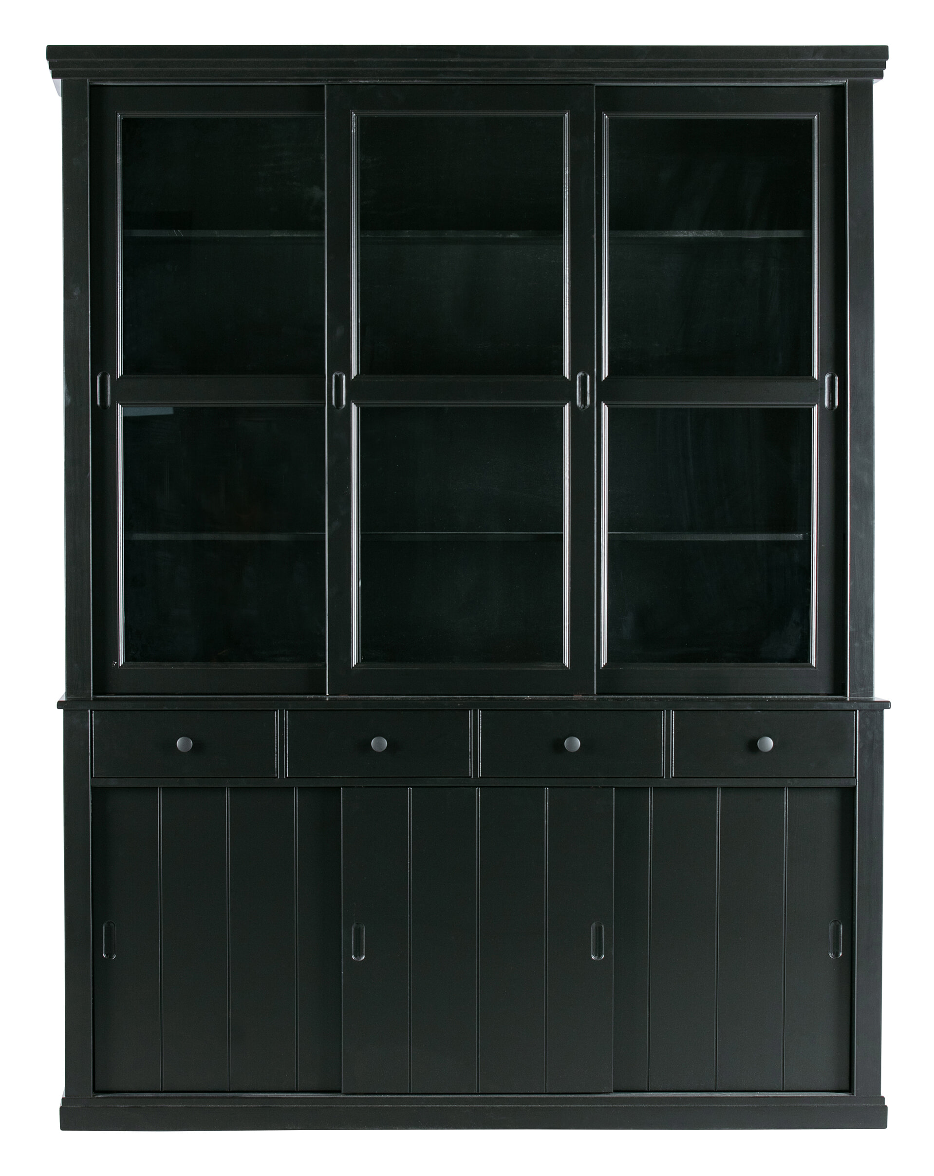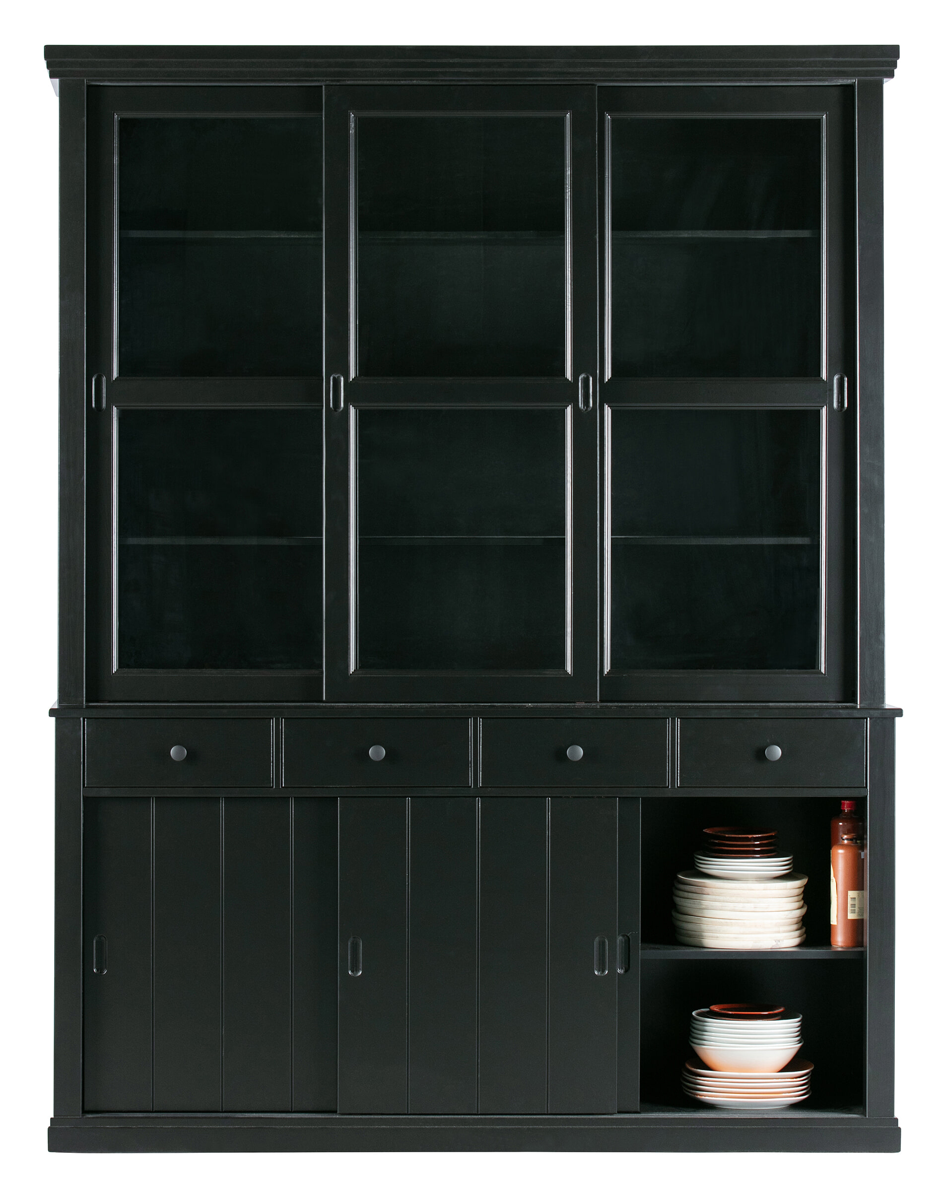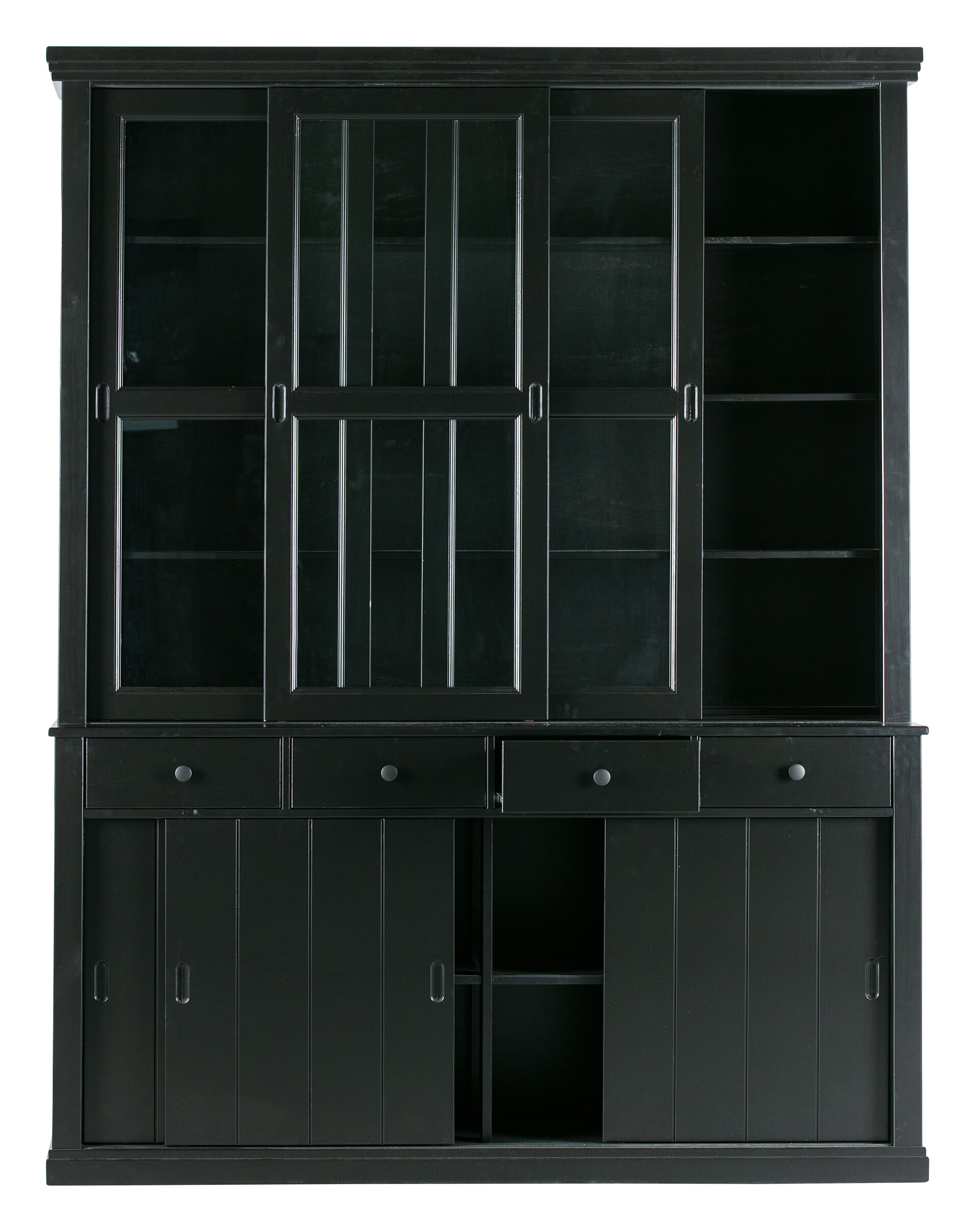 - Voorzien van vier lades, drie dichte schuifdeuren en drie glazen schuifdeuren