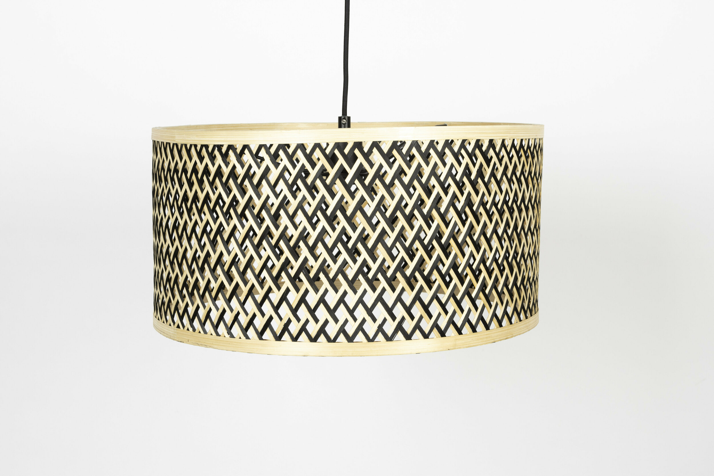 - Materiaal: Bamboe lampenkap. Zwart gelakte metalen behuizing. Zwarte textielkabel.
