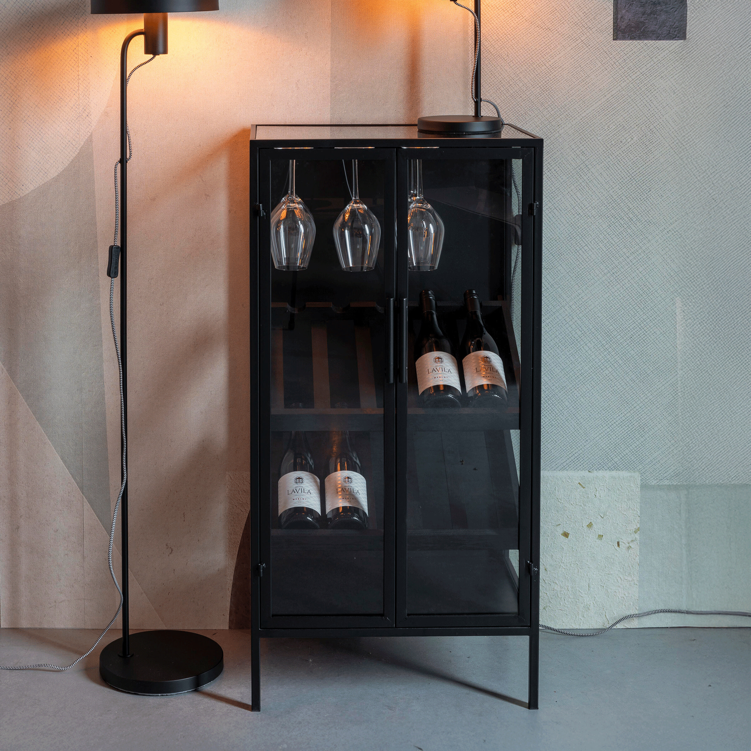 De wijnkast Erickson van ZILT is een stijlvolle kast die modern design en praktisch gebruik prachtig samenbrengt. Het gepoedercoate ijzeren frame geeft de kast een stoere uitstraling, terwijl de glazen deuren zorgen voor een elegante en open look.