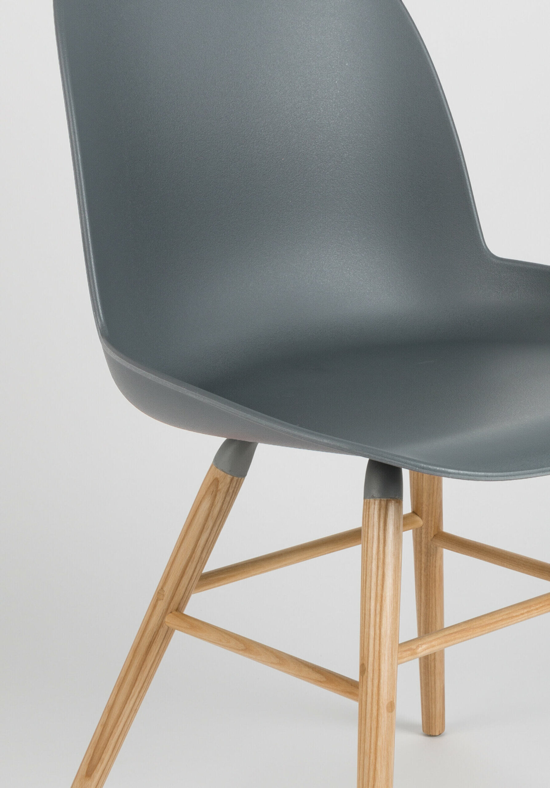 • Materiaal: 100% PP zitting, massief essenhouten poten, aluminium frame.
