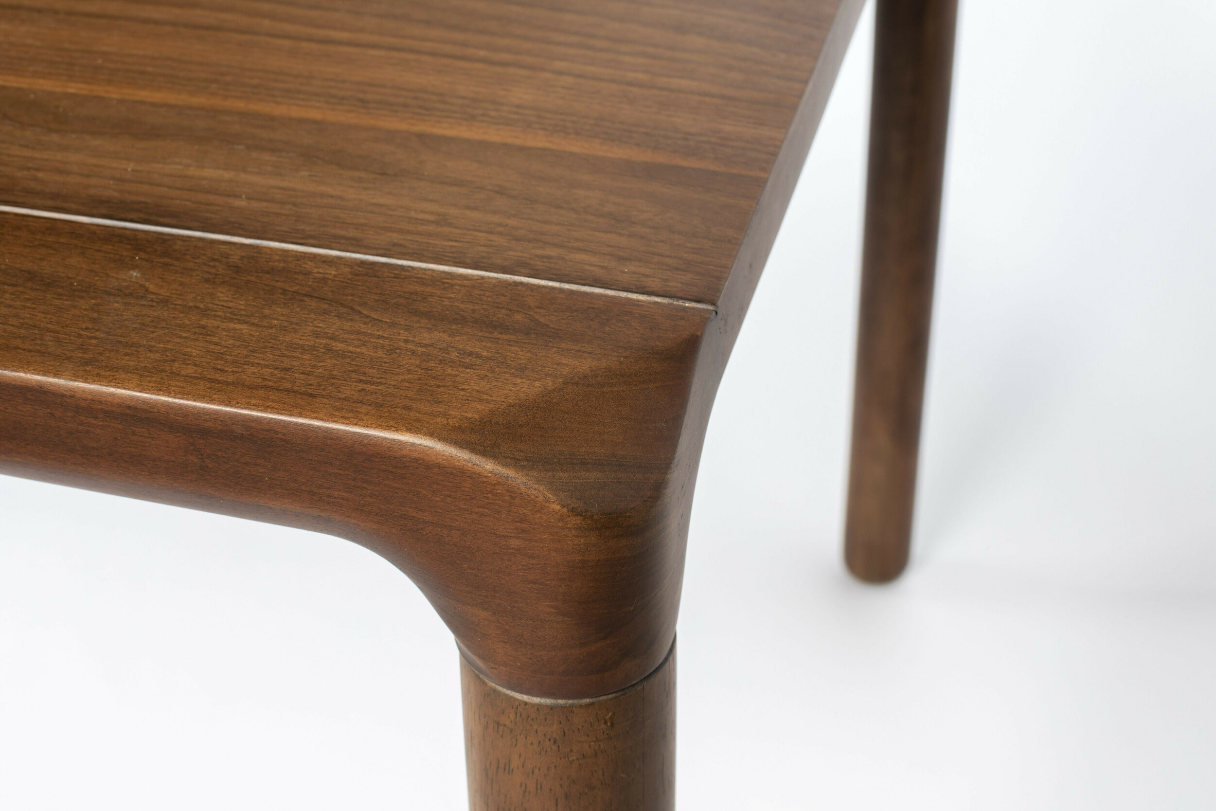 • Materiaal: 25 mm essenhouten gefineerd MDF tafelblad, 50 mm massief essenhouten randen, massief essenhouten poten. Walnoot PU gelakt.