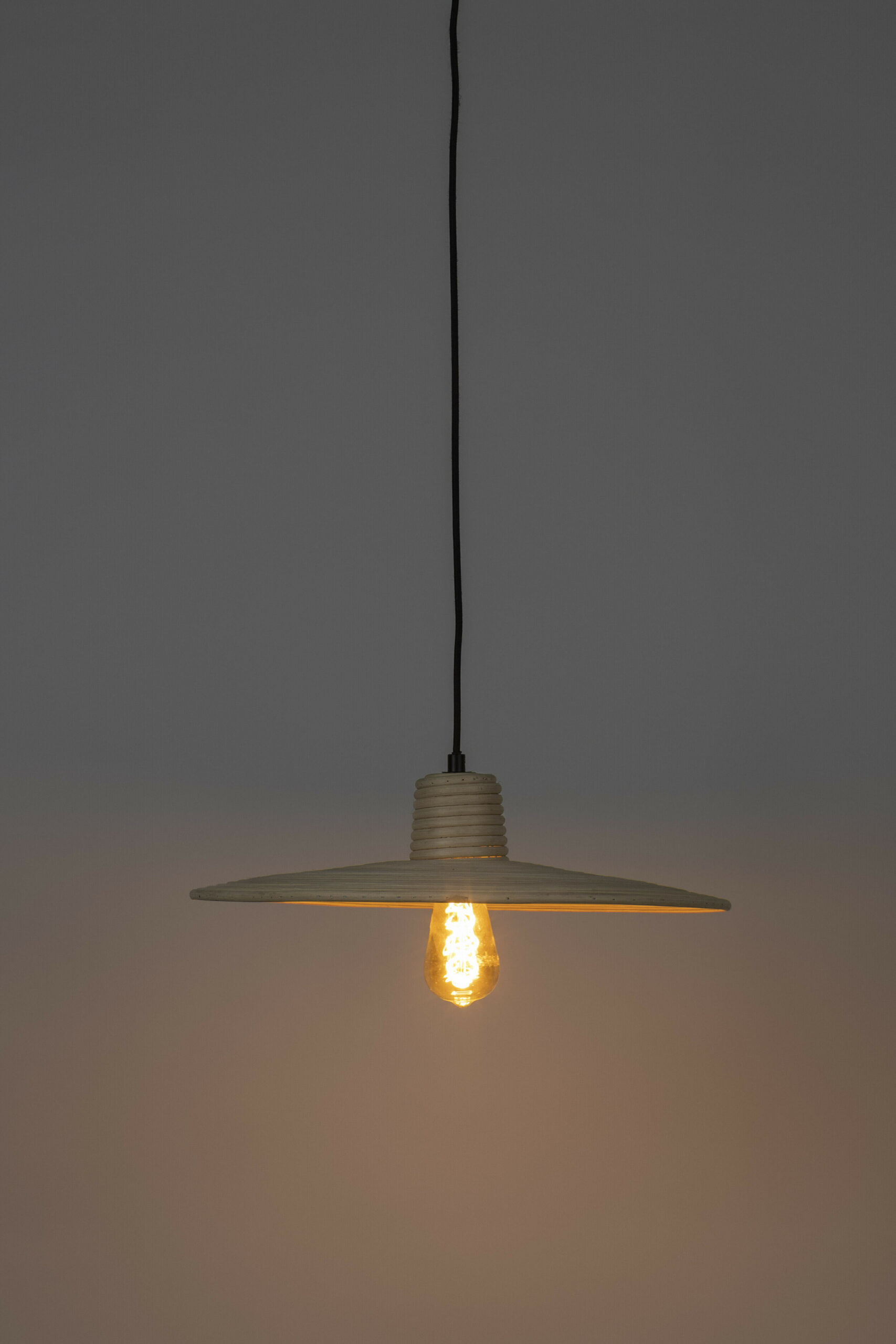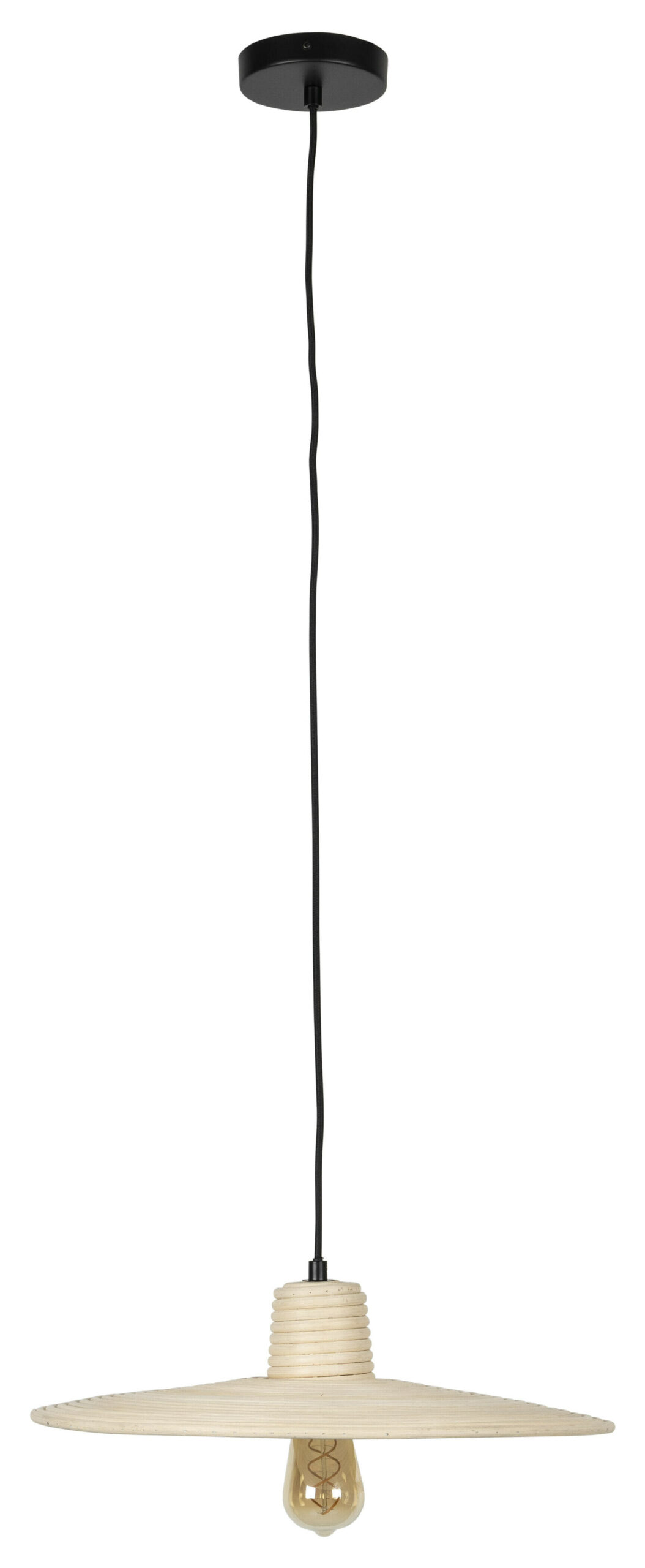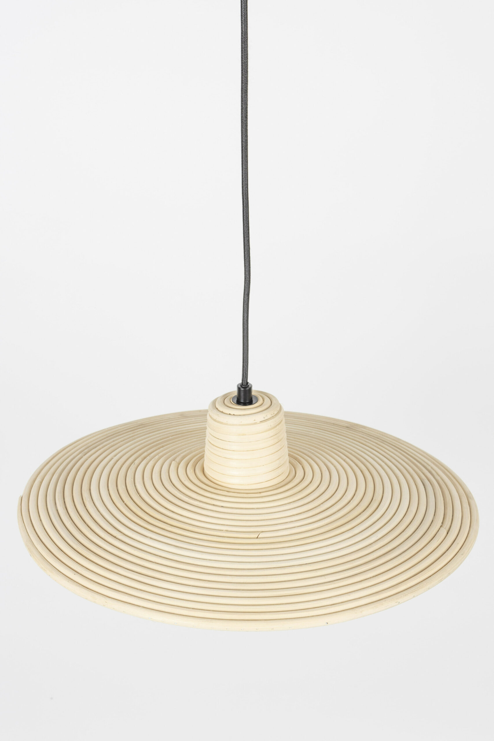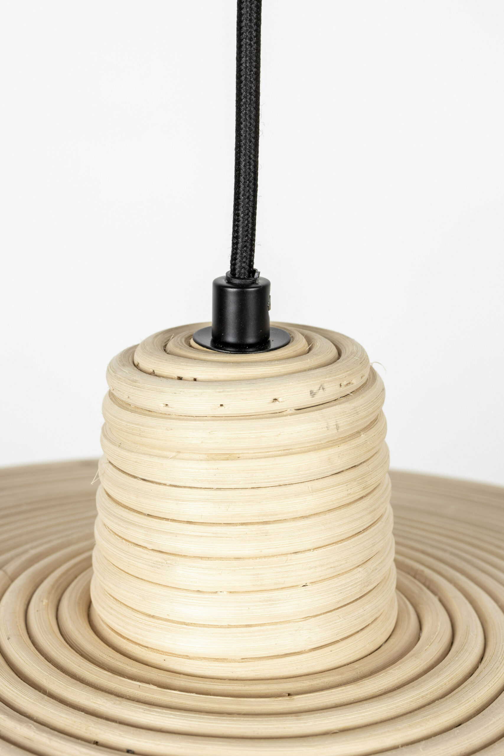 - Materiaal: Zwart geschilderde ijzeren kap. Rotan kap. Zwarte katoenen textielkabel.